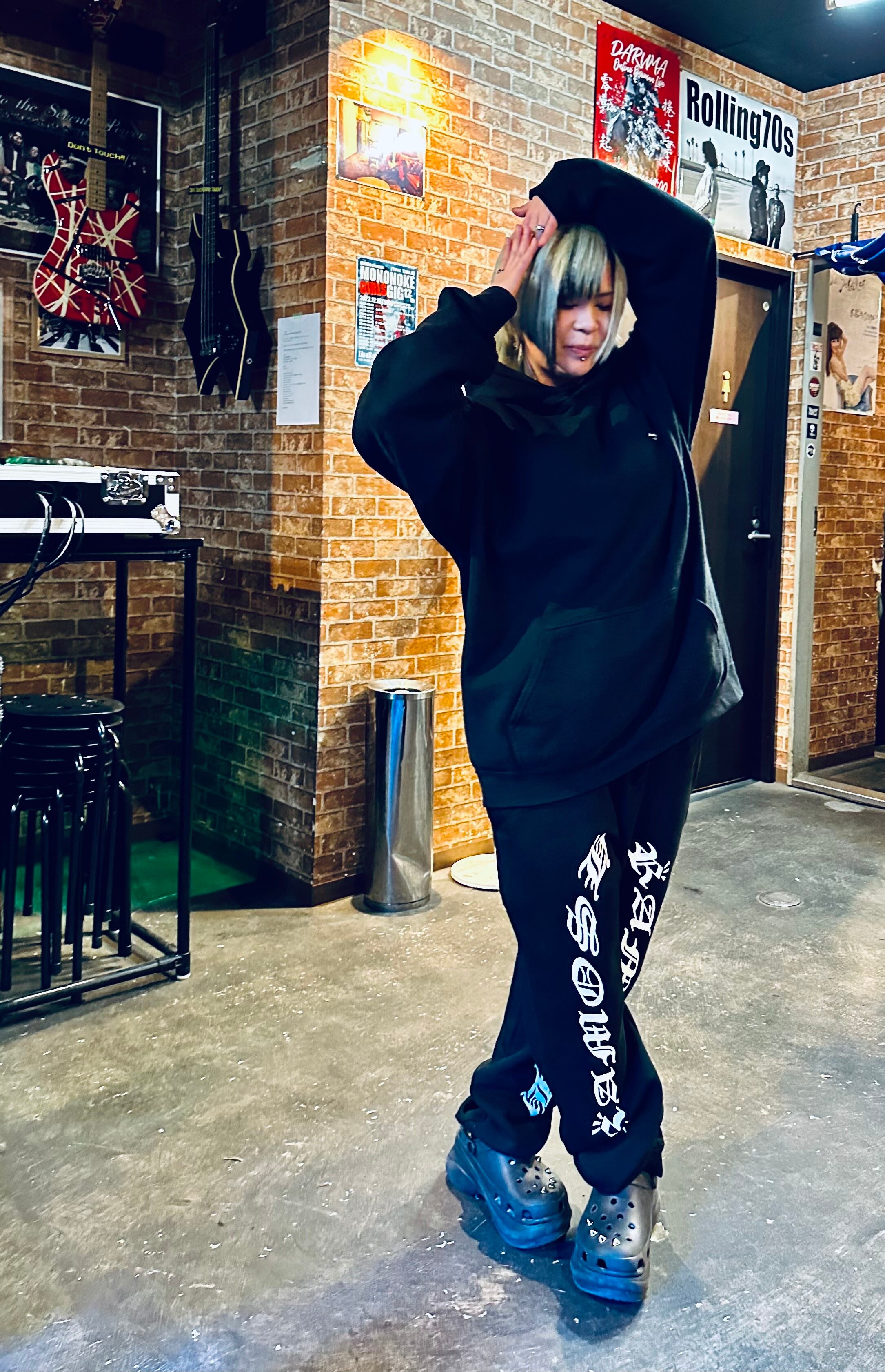 スウェットパンツ黒(白プリント)