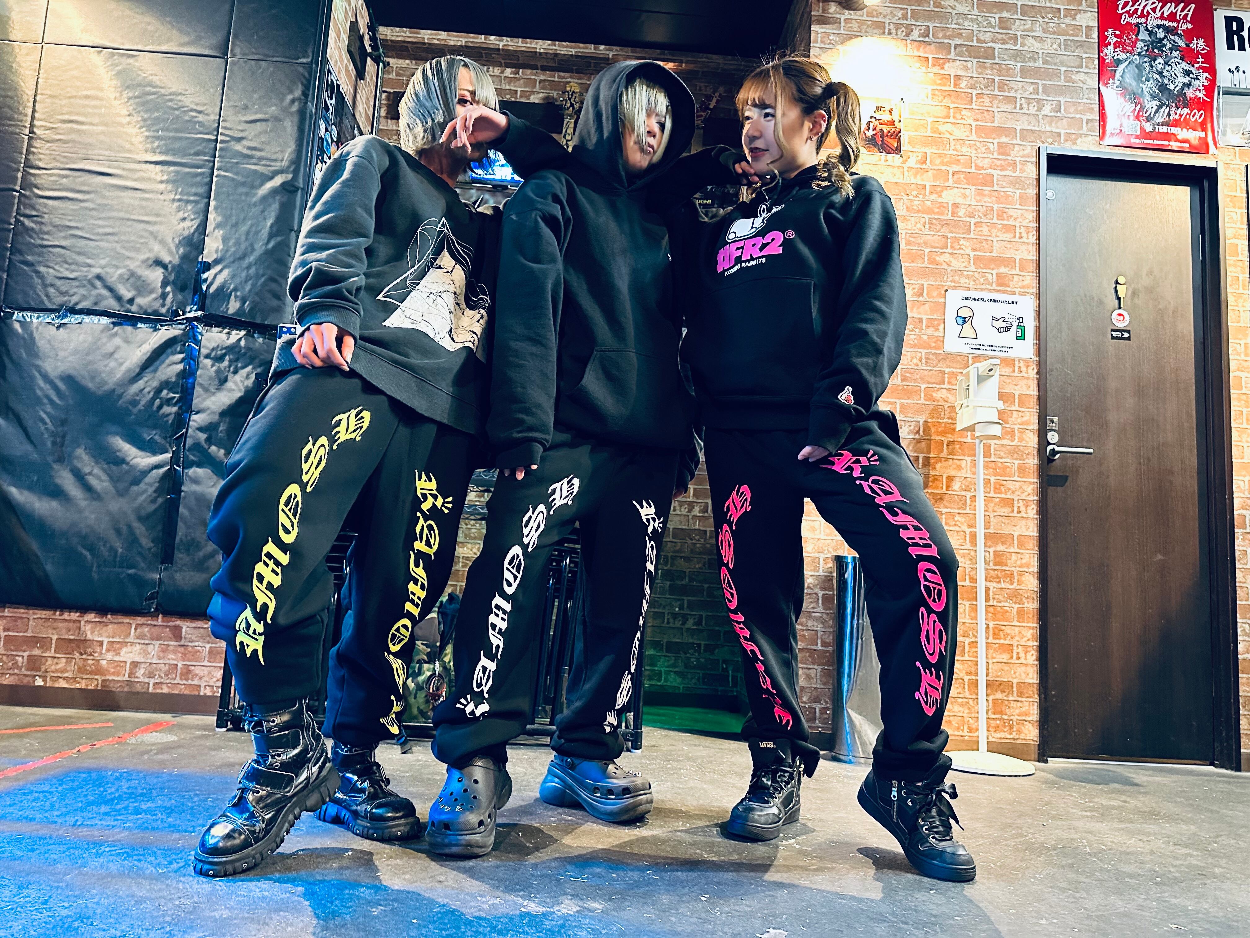 サイドとヒップの両方にポケットを備えており、ウエストは、調整可能な丸ひも付き(アダルトは外側、キッズは内側)。裾下はリブ仕様で、身頃とリブのつなぎ部分に入ったまたぎ2本針ステッチが、カジュアルな印象。